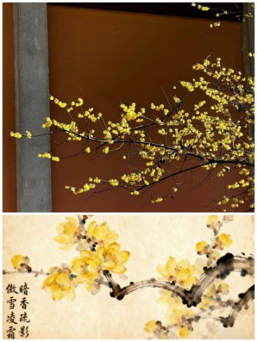 顺着甬道慢行,观梅的眼便不由得睁开了。大雄宝殿侧,几株老梅的身影最先撞入眼帘。枝干是真正的“疏影横斜”,墨黑的虬枝伸向灰白的天空,如怀素醉后的狂草,笔笔皆是筋骨。那上面缀着的,不是花,倒像是一粒粒细心凝成的蜜蜡,是“枝横碧玉天然瘦,蕾破黄金分外香”的活画。阳光斜斜地切过殿角,给那满树“金蓓”镶上毛茸茸的光晕,佛前那株数百年的古梅,便在光中静静地“闪”着,不是耀眼的闪,是温润的、内敛的宝光,看了教人心也蓦地沉静下来。